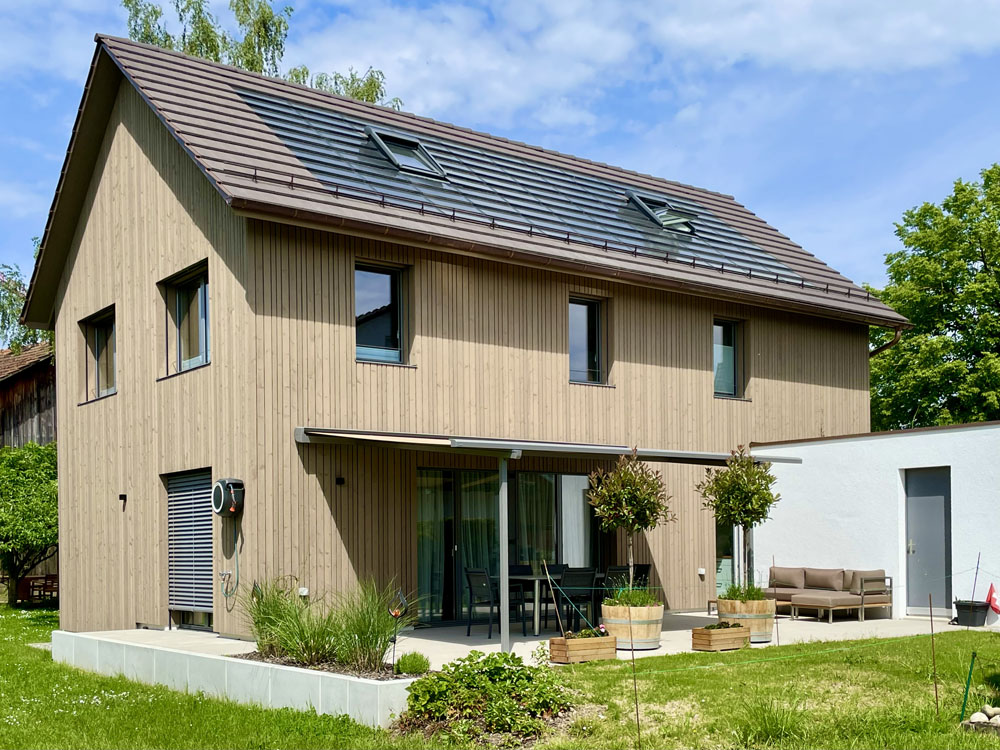 Eine flächenbündig integrierte Indach-Photovoltaikanlage ergänzt das energetische Konzept und unterstützt eine nachhaltige Energieversorgung.