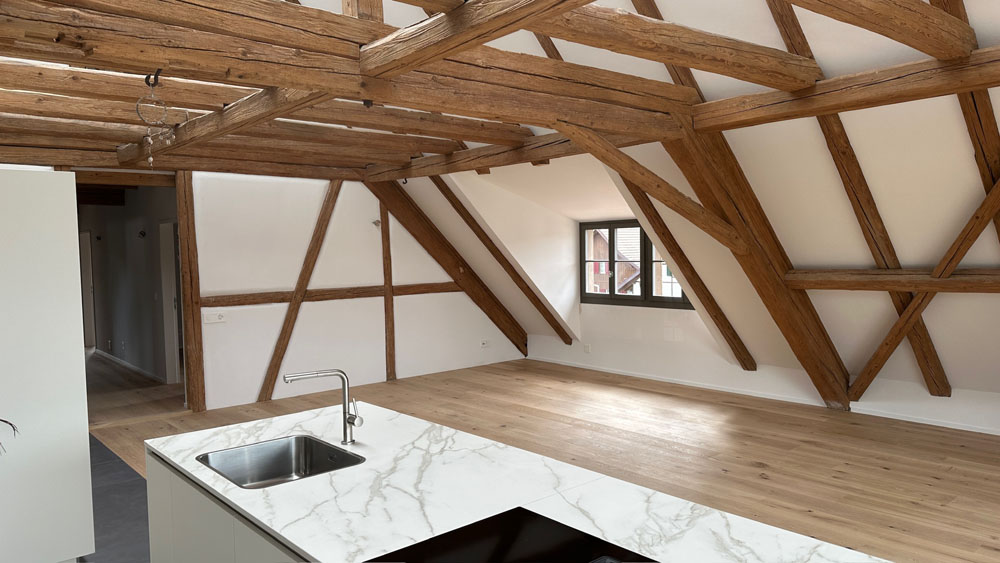 Das Vielzweckbauernhaus von 1863 wurde umfassend umgebaut, wobei der bestehende Wohntrakt verkleinert und neu organisiert wurde, um den aktuellen Bedürfnissen gerecht zu werden. Parallel dazu erfolgte der Ausbau des ehemaligen Ökonomieteils, der neu unterkellert und in drei eigenständige Mietwohnungen umgebaut wurde.